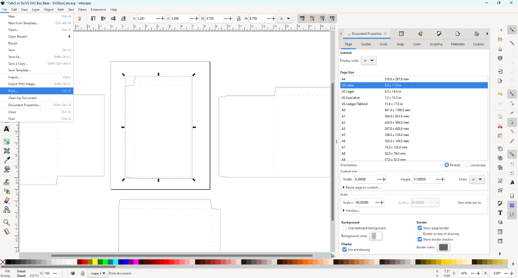 Print SVG Box Templates Using Inkscape