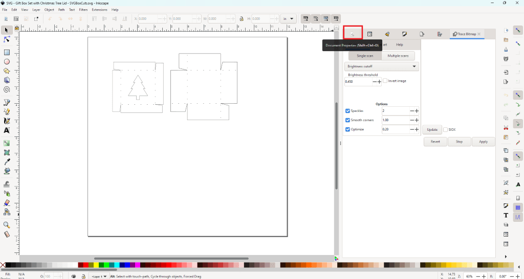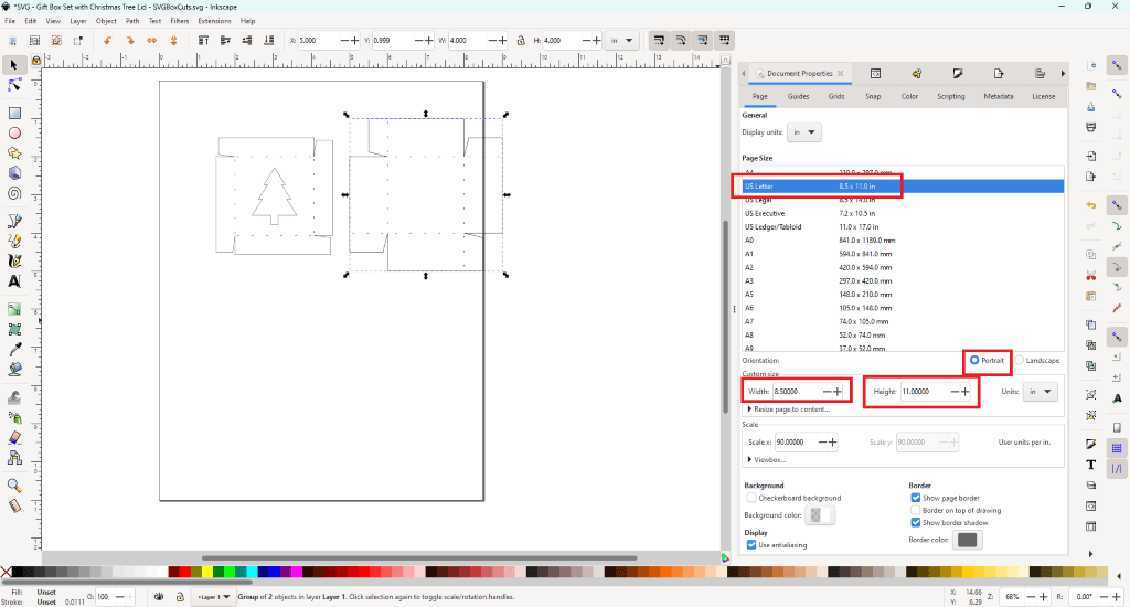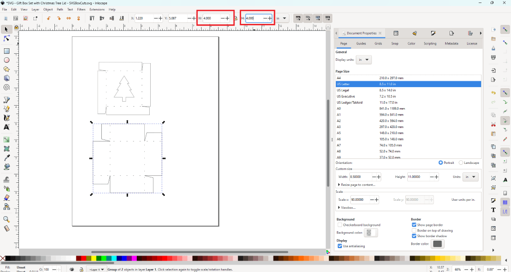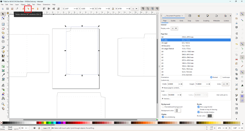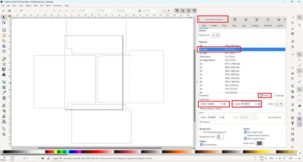 - Double check that the measurements showing in Inkscape match the measurements listed for the SVG template.